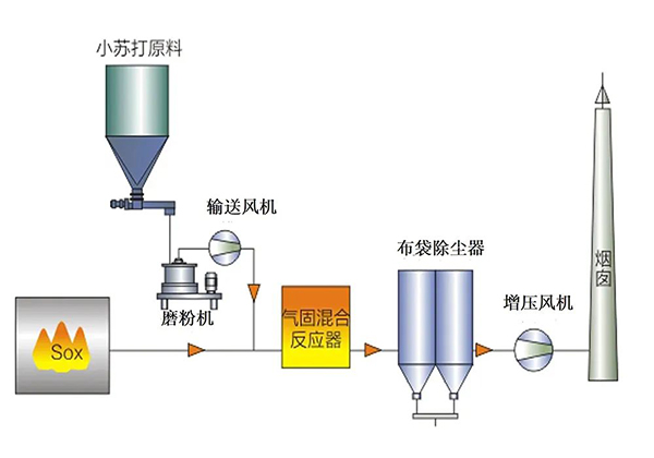 SDS干法脫硫除塵技術以小蘇打超細粉 (NaHCO3)為脫硫劑,NaHCO3超細粉在高溫煙氣的作用下分解出高活性Na2CO3和CO2,Na2CO3與煙氣中的SO2及HCI、HF等酸性氣體充分接觸發生化學反應,被吸附凈化,副產物隨氣流進入布袋除塵器收集,凈化后的煙氣達標排放。該項技術可廣泛應用于燃氣鍋爐、熱風爐、加熱爐等領域煙氣脫硫除塵超低排放。